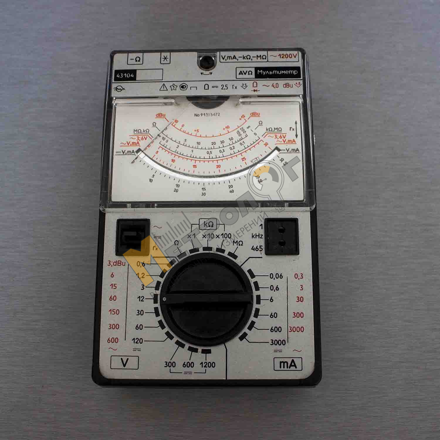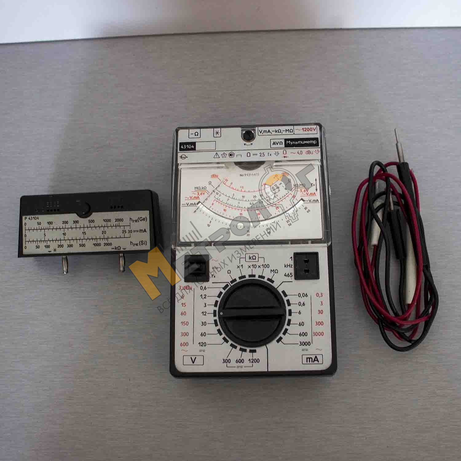 Прилад електровимірювальний багатофункціональний Ц43104 (тестер, мультиметр) аналоговий призначений для вимірювань сили та напруги постійного струму, середньоквадратичного значення сили та напруги змінного струму синусоїдальної форми, опору постійному струму, абсолютного рівня сигналу напруги змінного струму, параметрів транзисторів потужності до 150 мВт.